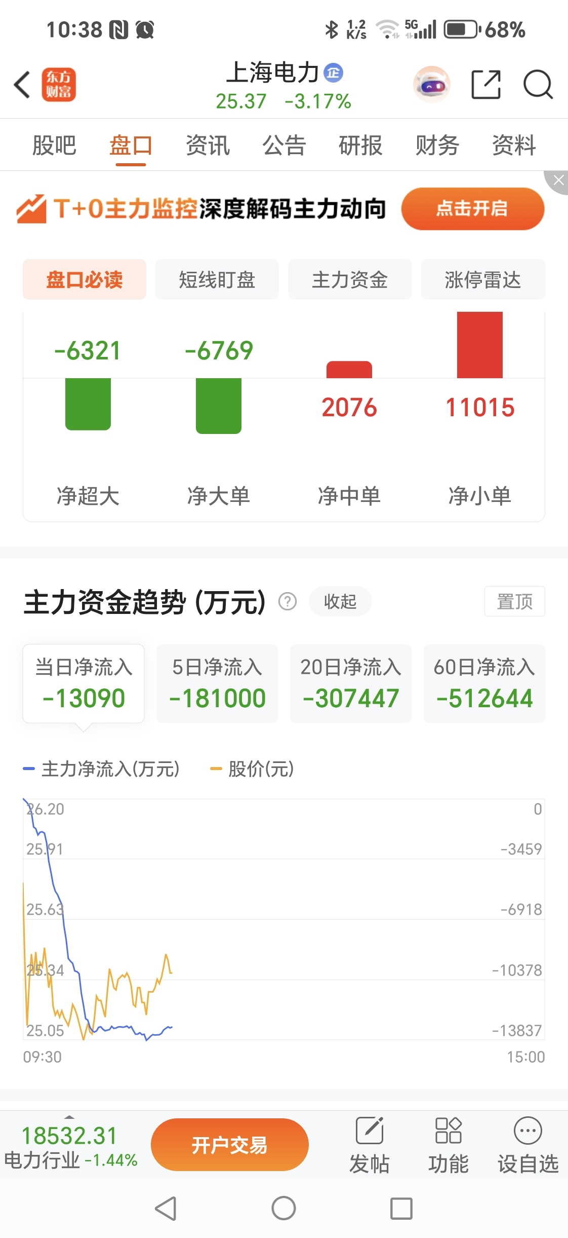 $上海电力(SH600021)$ 主力资金净流入趋势图线看,目前是稳住没再净流出,下午不知道会不会好点