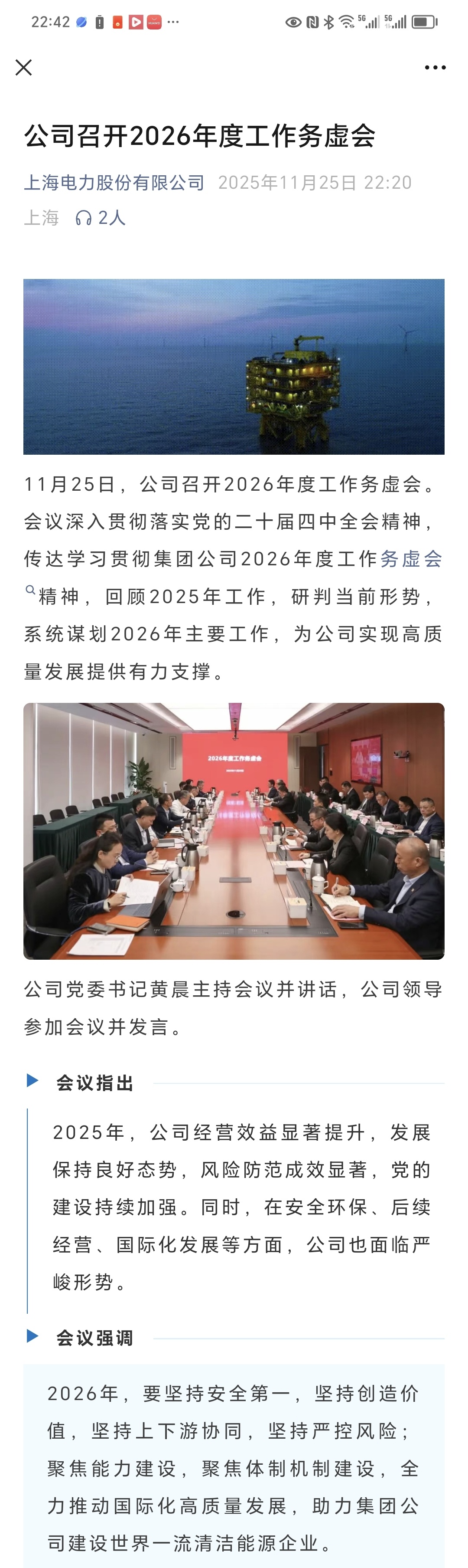 $上海电力(SH600021)$ 今日上海电力内部会议,黄晨提出,2026年上海电力要全力推动国际化高质量发展,助力集团公司建设世界一流清洁能源企业!
