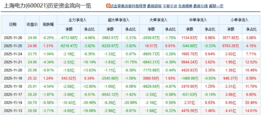 $上海电力(SH600021)$ 从11月13日开始,每日超大单持续流出,小单持续流入,意思是主力在出货,散户持续在买入,感觉主力快跑光了,实事求是底部筹码峰越来越密集,有点侮辱智商,演戏一天可以,连续十几天就露馅了。很多痕迹时间长了就明显了,大家认真理解!