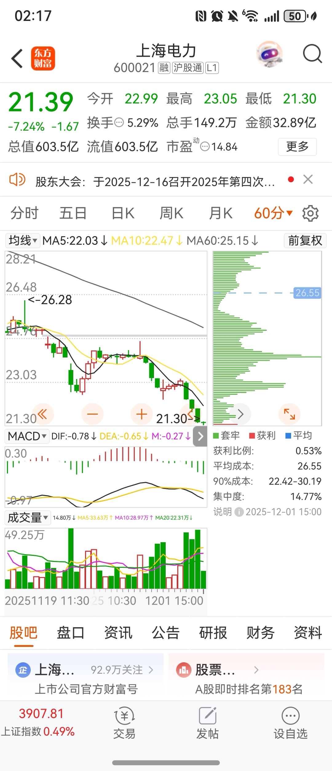 $上海电力(SH600021)$ 全部被套牢