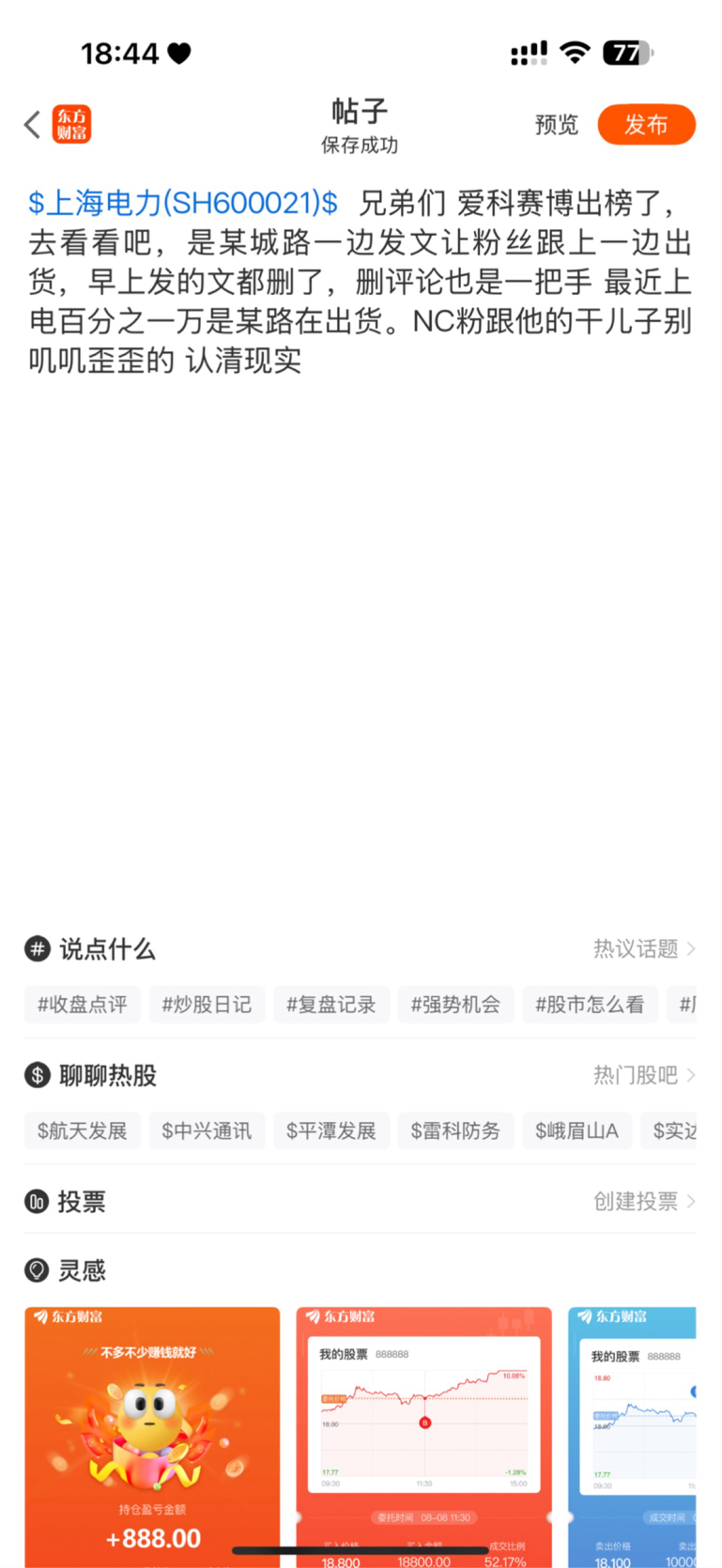 温馨提示: 1.根据《证券法》规定,禁止编造、传播虚假信息或者误导性信息,扰乱证券市场;2.用户在本社区发表的所有资料、言论等仅代表个人观点,与本网站立场无关,不对您构成任何投资建议。用户应基于自己的独立判断,自行决定证券投资并承担相应风险。《东方财富社区管理规定》