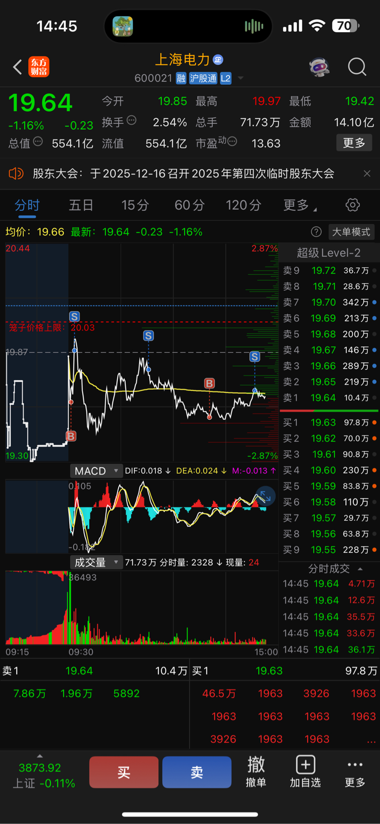 $上海电力(SH600021)$ 昨天尾盘进的,半仓持股做T学量化,总有一天我会成为比量化更厉害的人