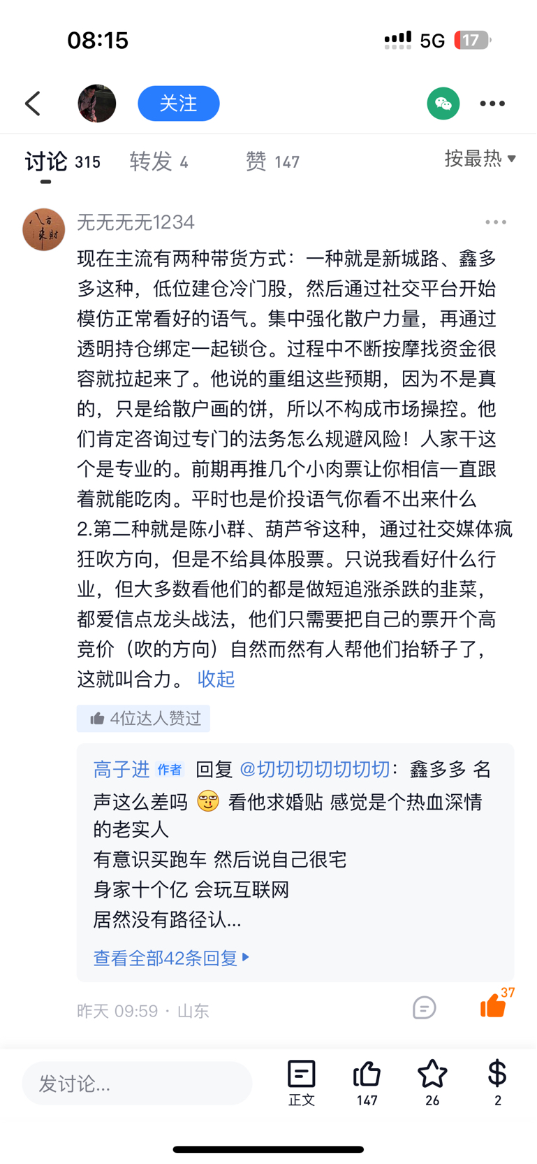 郑重声明:用户在财富号/股吧/博客等社区发表的所有信息(包括但不限于文字、视频、音频、数据及图表)仅代表个人观点,与本网站立场无关,不对您构成任何投资建议,据此操作风险自担。请勿相信代客理财、免费荐股和炒股培训等宣传内容,远离非法证券活动。请勿添加发言用户的手机号码、公众号、微博、微信及QQ等信息,谨防上当受骗!