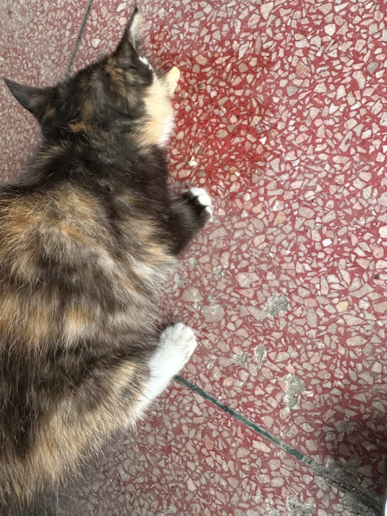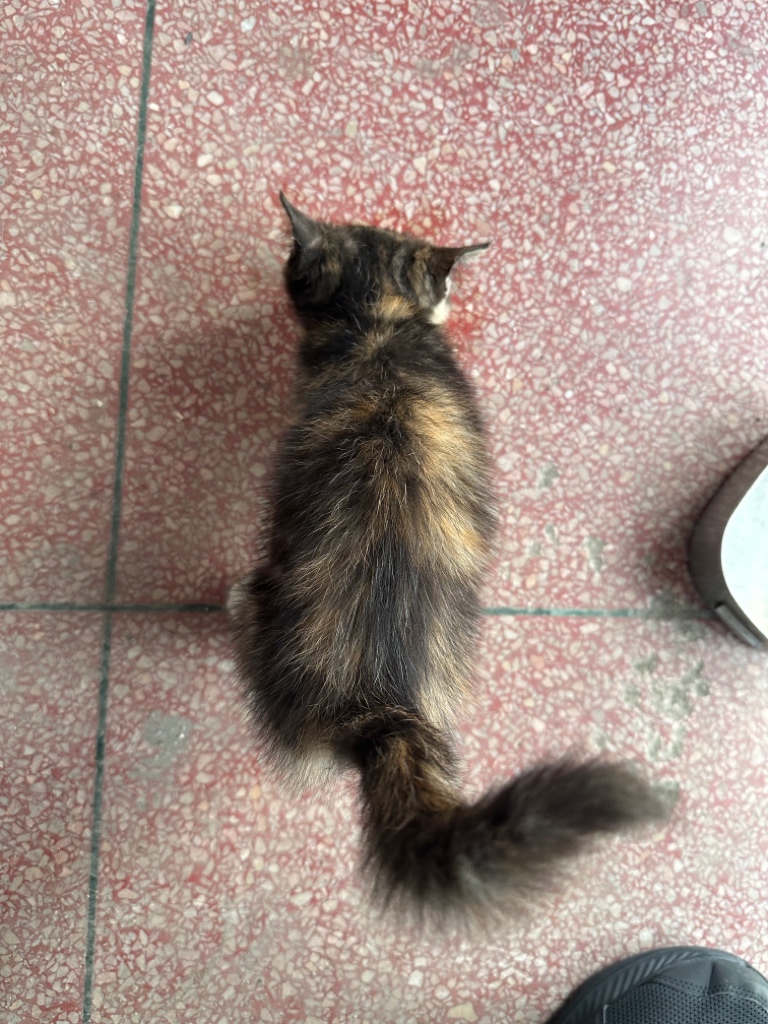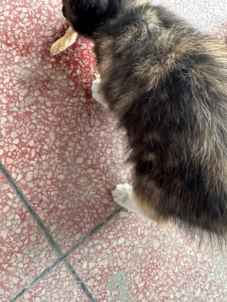看得出来很饿了 全部吃完了居然 又把水放在旁边 等猫砂跟猫砂盆到了带去洗澡 准备带进家里