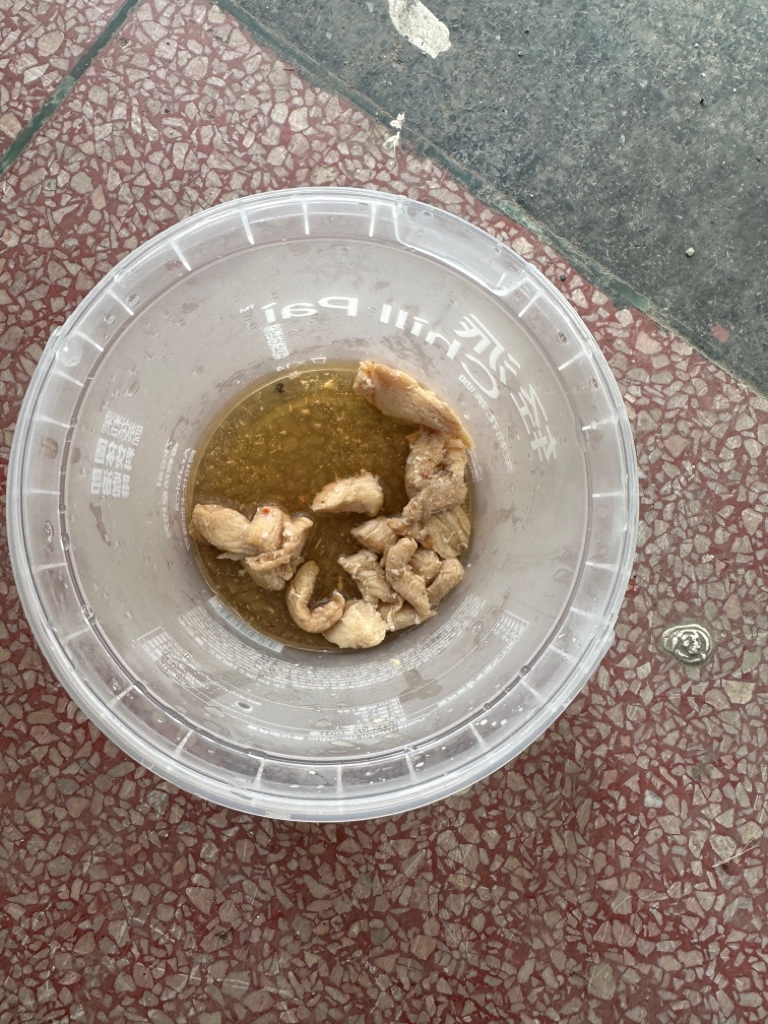 中午给小猫咪做的鸡胸肉看得出来很饿了全部吃完了居然又把水放在旁边等猫砂跟猫砂盆到