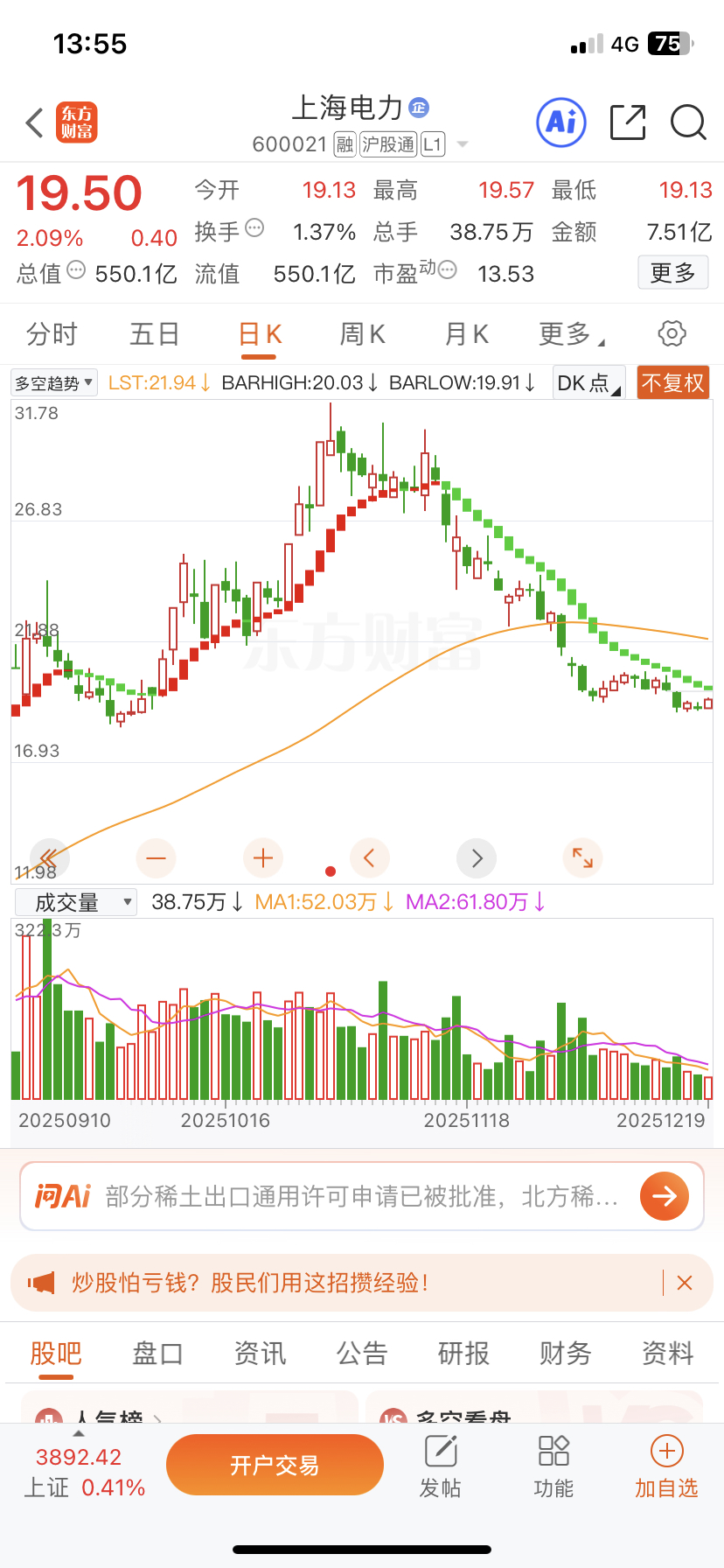 $上海电力(SH600021)$ 还是下跌中继看不到反转,反转至少有都4到5个点