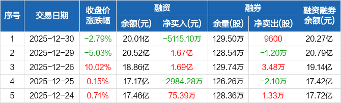 上海电力:融资净偿还5115.1万元,融资余额20.01亿元(12-30)