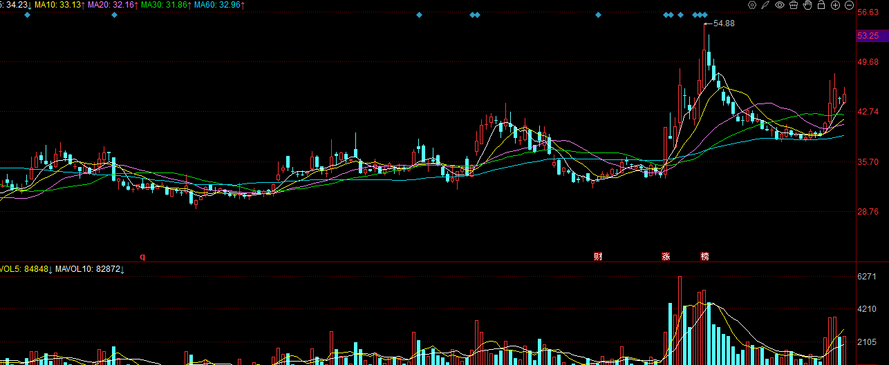 荣盛发展002146:低空经济近期有着明显的异动,荣盛发展子公司美亚航空与海南航天城低空产业发展有限公司签署合作备忘录,在新增了低空经济概念之后,荣盛发展周三也是强势涨停,下方多条均线也是拐头向上,短期来看有要开始走加速的迹象,现在还是在圆弧底的上升通道之中,周四如果能够小幅的高开有接力中阳线还是可以期待的。