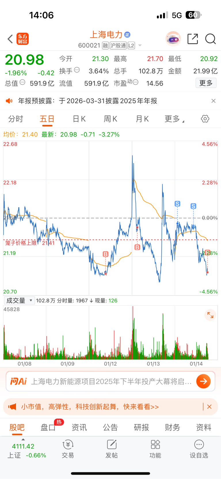 $上海电力(SH600021)$ 多亏早上跑了没贪