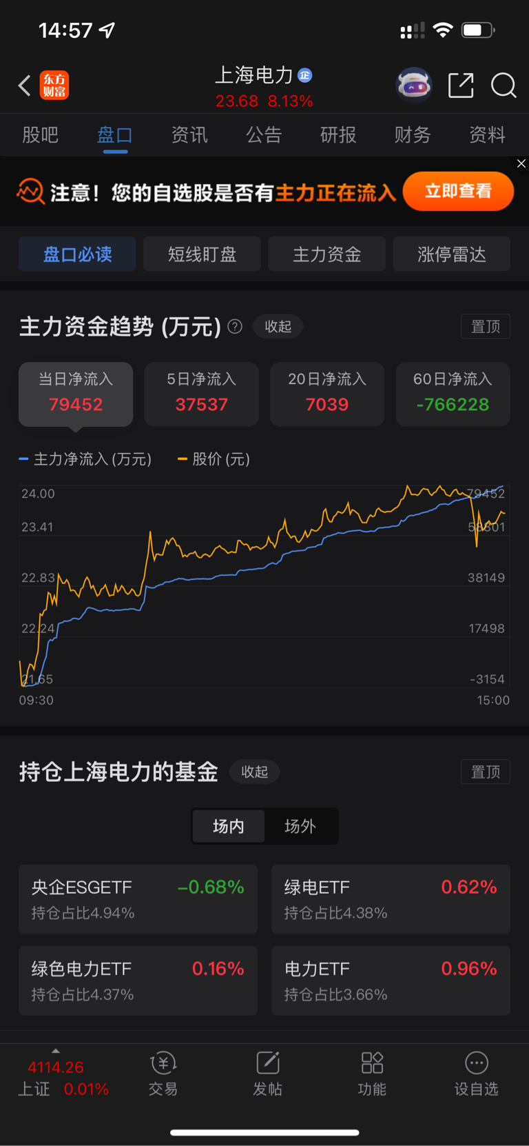 $上海电力(SH600021)$ 你们都不看资金曲线的吗,明显就是吸筹,有些纱披说在出货诱多?真的无论同花顺还是这边的股吧各个都像fen坑一样,一些真的无语了