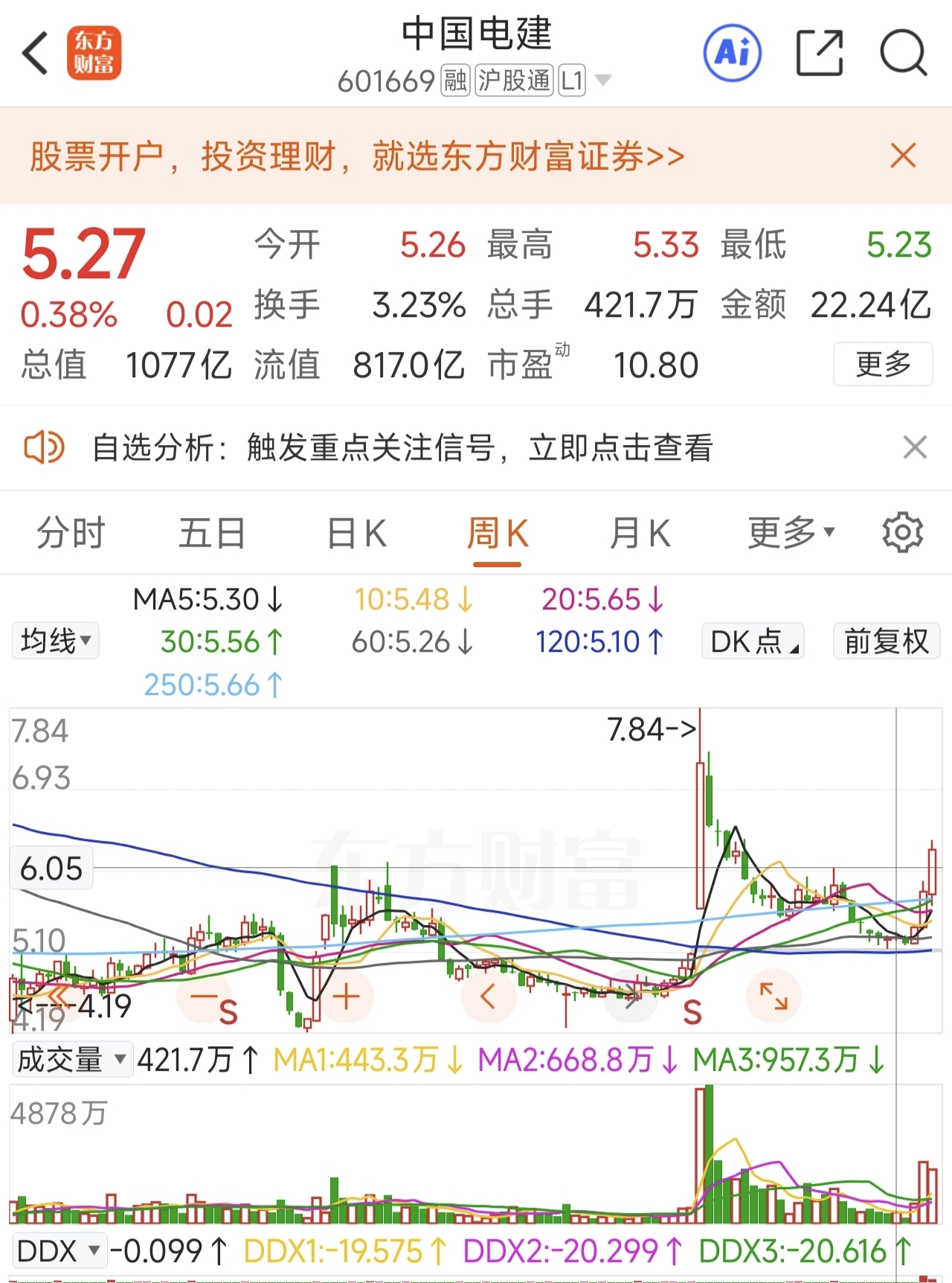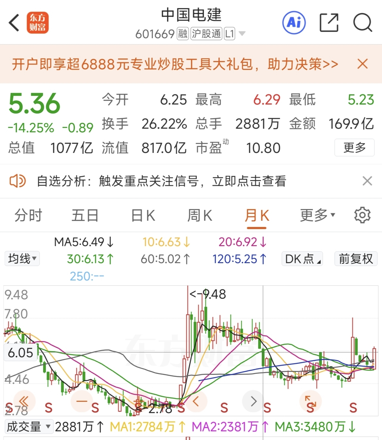 今天看了一天中国电建的盘面走势,我根本不关心是不是涨停,今天我最关心的就是6.0