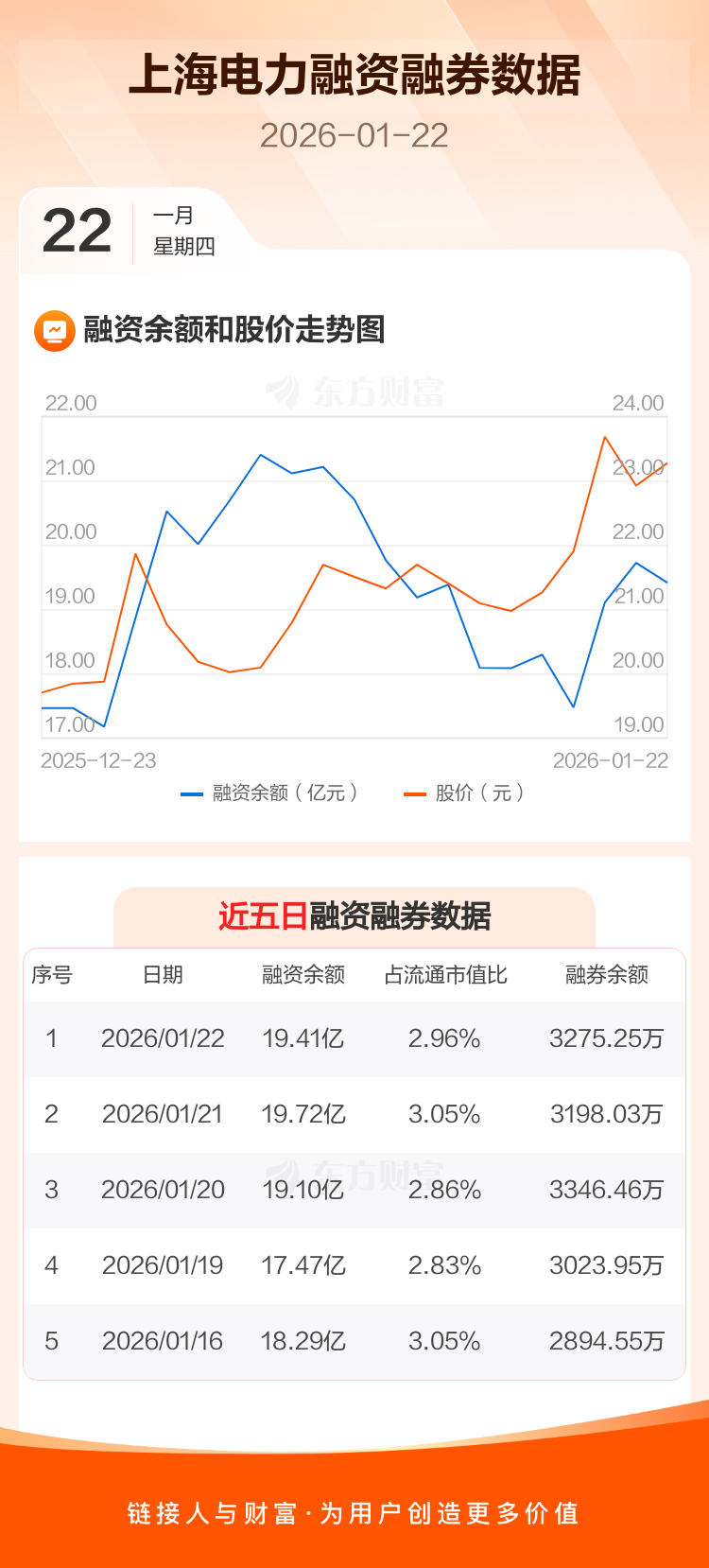 交易所最新数据显示,上海电力于2026年1月22日获融资买入2.71亿元,融资偿还3.04亿元,当日融资净偿还3282.54万元。目前,该股融资余额19.41亿,占流通市值比例为2.96%。