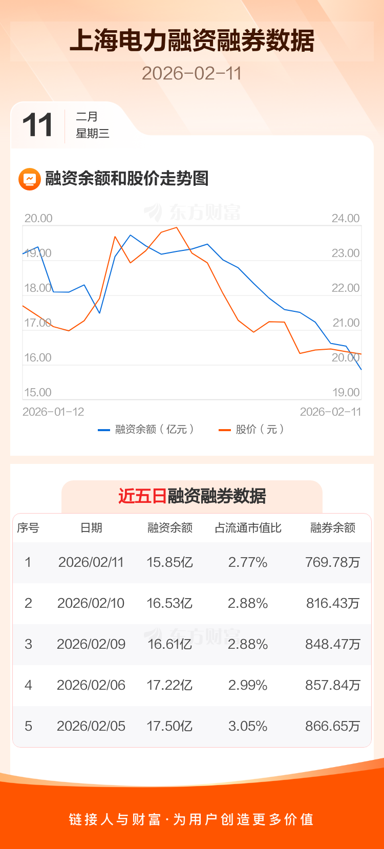 交易所最新数据显示,上海电力于2026年2月11日获融资买入5575.63万元,融资偿还1.23亿元,当日融资净偿还6768.24万元。目前,该股融资余额15.85亿,占流通市值比例为2.77%。