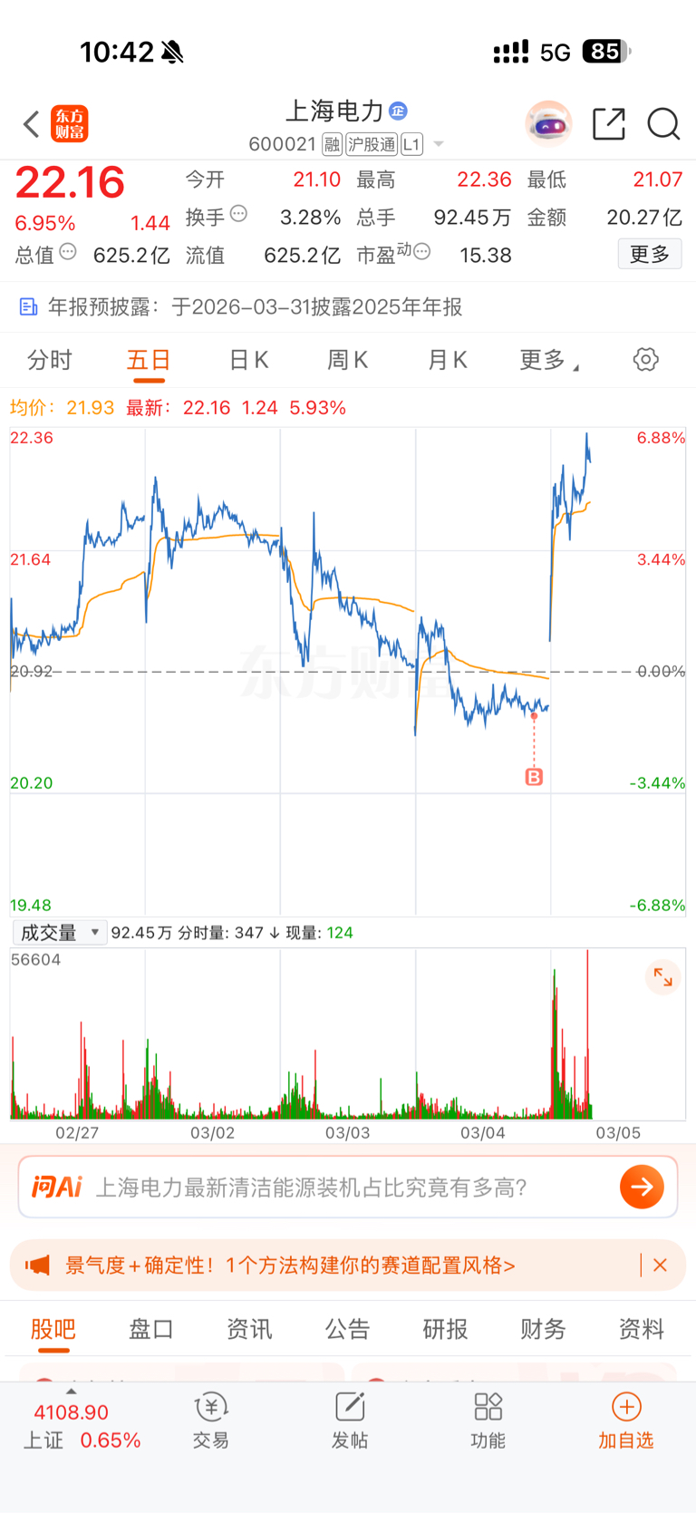 $上海电力(SH600021)$