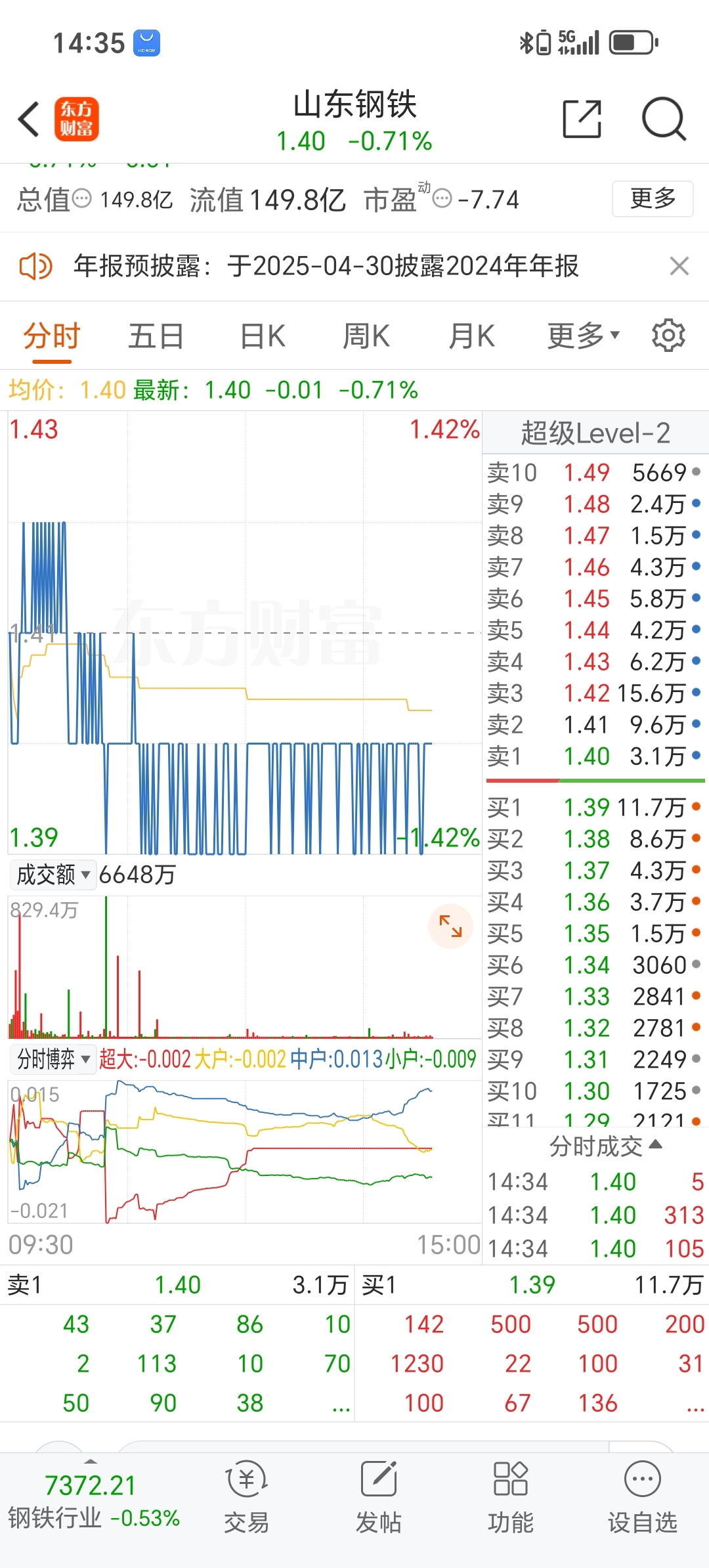 $山东钢铁(SH600022)$ 完了成交量7000万不到了,要完蛋了