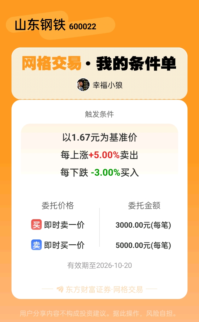 #条件单交流#  一位股神设置了一个网格交易条件单,接下来就是见证奇迹的时刻~$山东钢铁(SH600022)$
