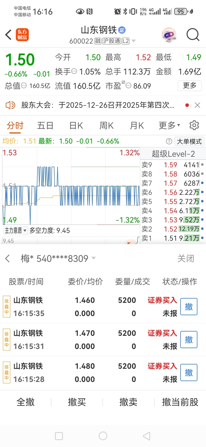$山东钢铁(SH600022)$ 兄弟们,单已挂好。