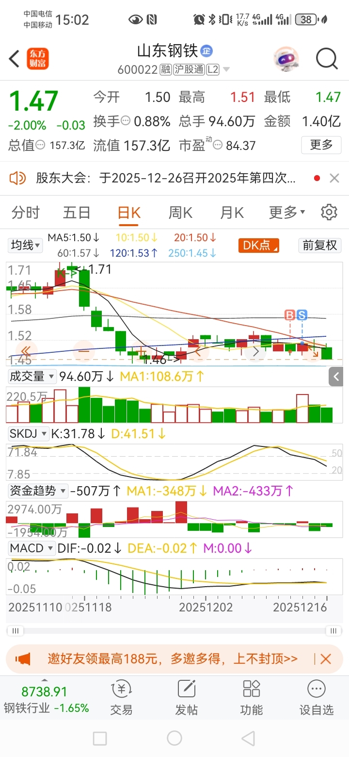 $山东钢铁(SH600022)$ 依旧没有下手,山东钢铁股性不及重钢。