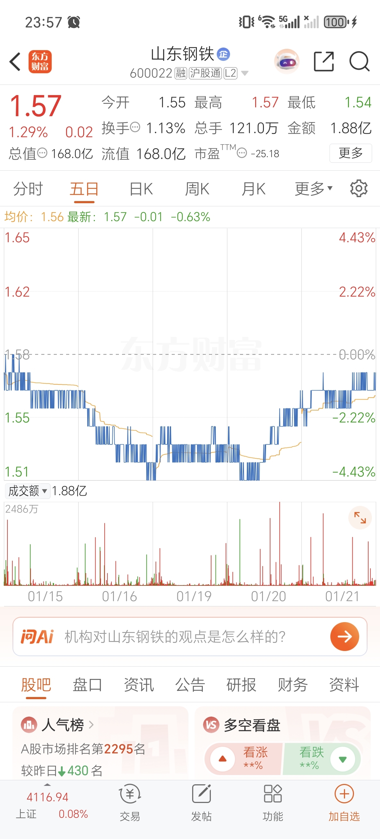 $山东钢铁(SH600022)$ 五天了,这两天资本进场都没拉起来,明后天如果没大资本进场,估计要一路跌回去