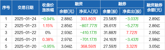 浙能电力:融资净买入303.8万元,融资余额2.88亿元(01-24)