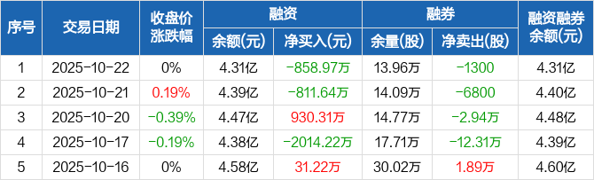 浙能电力:融资净偿还858.97万元,融资余额4.31亿元(10-22)