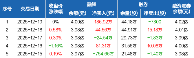 浙能电力:融资净买入186.92万元,融资余额4亿元(12-19)