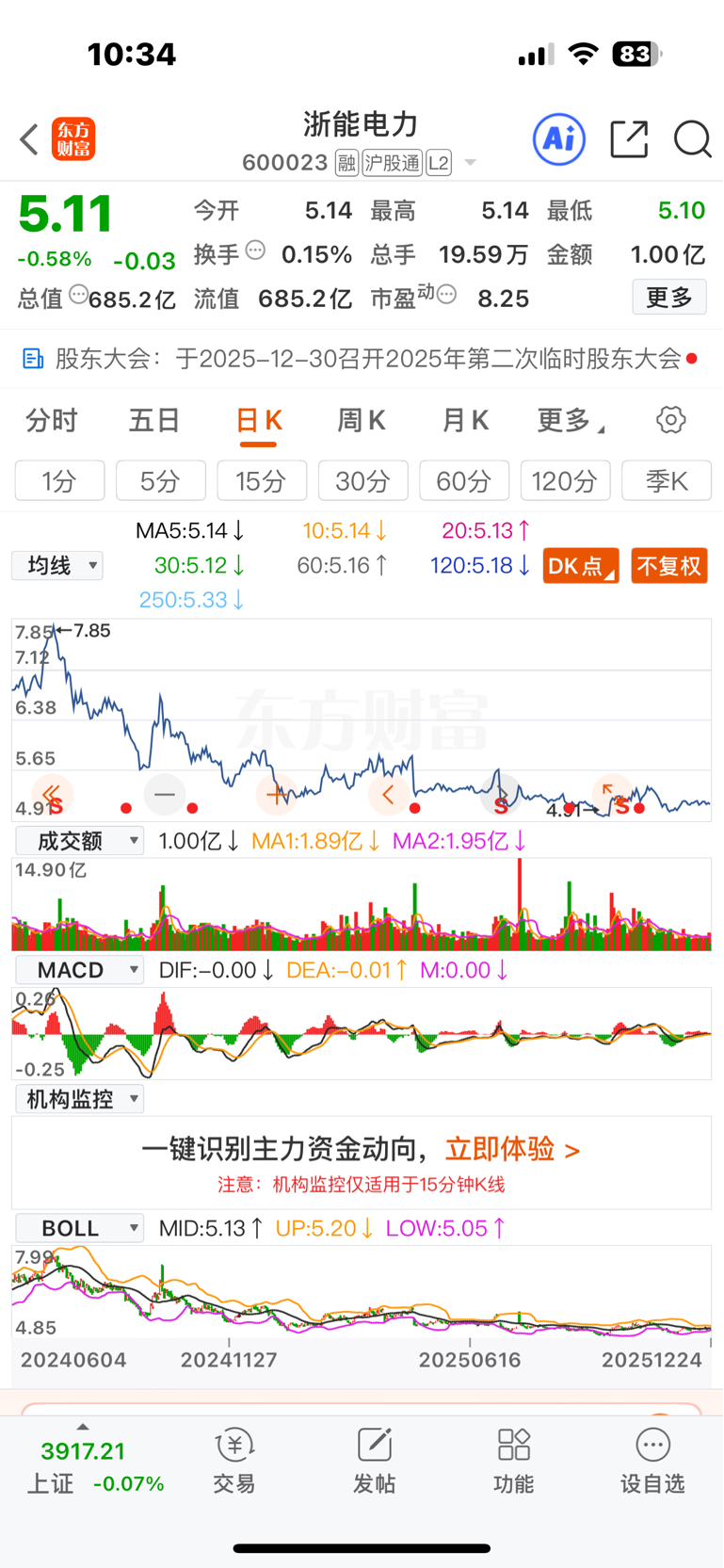 $浙能电力(SH600023)$ 这趋势是节节低、垃圾!