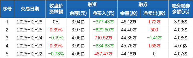 浙能电力:融资净偿还377.43万元,融资余额3.94亿元(12-26)