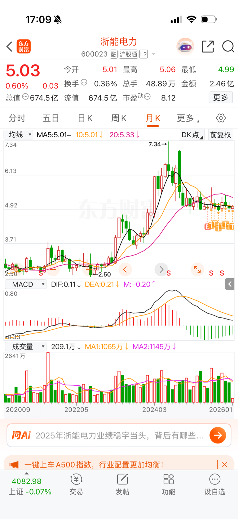 $浙能电力(SH600023)$ 月线高位死叉调整,一般都是腰斩起步。能横一年就说明问题了。