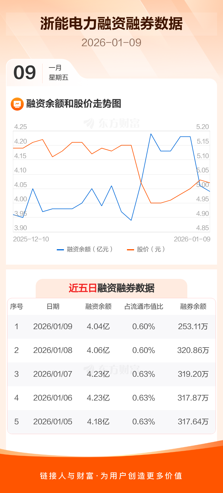 浙能电力:融资净偿还187.45万元,融资余额4.04亿元