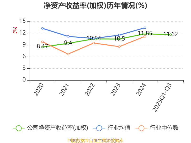 盈利能力方面, 2025年前三季度公司加权平均净资产收益率为11.62%,同比上升1.76个百分点。公司2025年前三季度投入资本回报率为4.91%,较上年同期下降0.18个百分点。