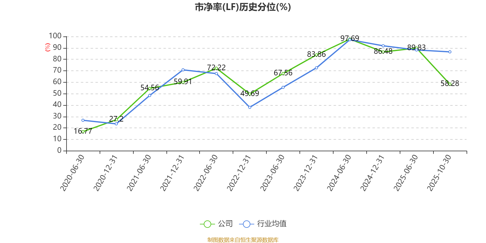 市盈率、市净率为负时,不显示当期分位数,会导致折线图中断。