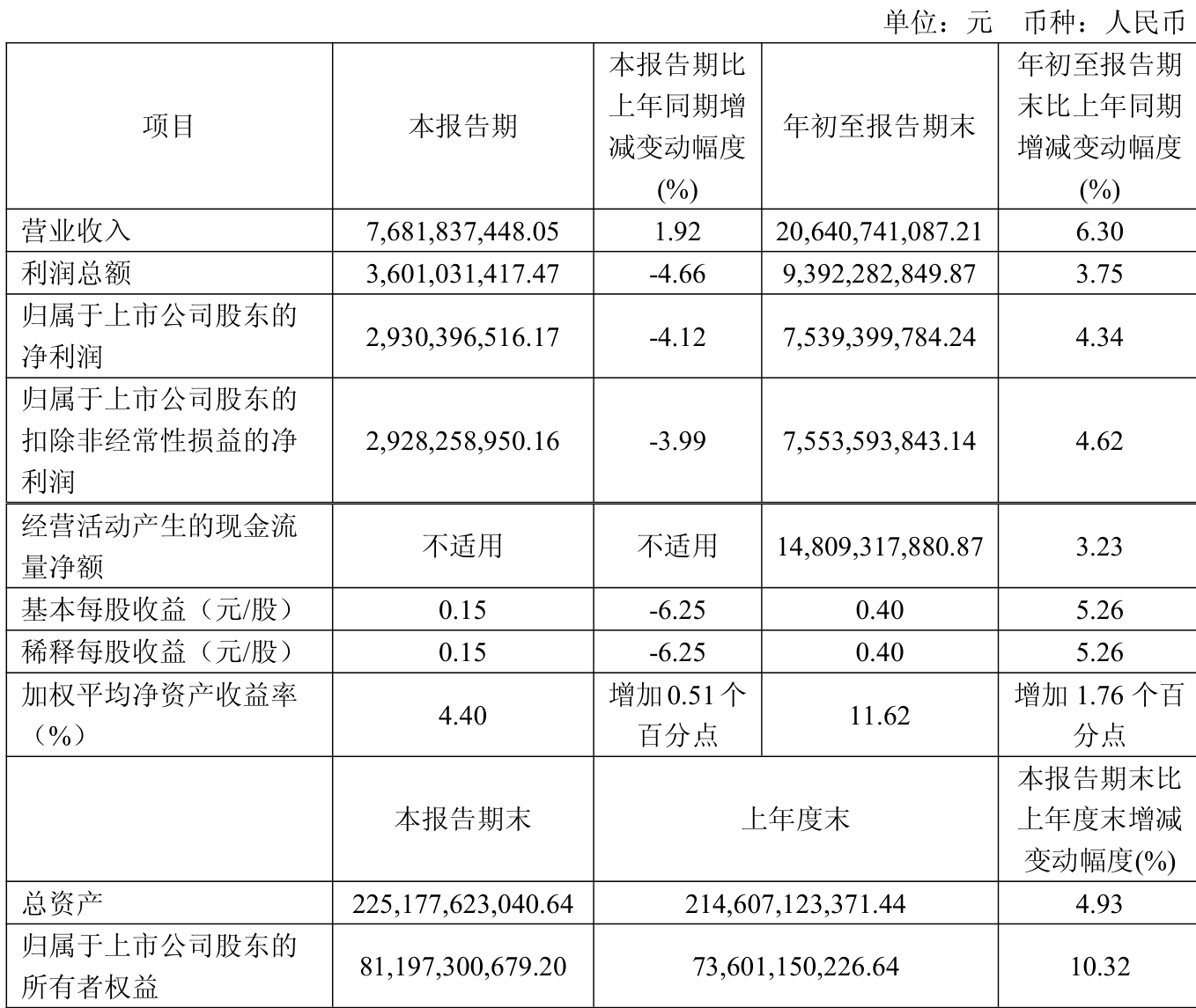 中证智能财讯华能水电(600025)10月31日披露2025年第三季度报告。前三季度公司实现营业总收入206.41亿元,同比增长6.30%;归母净利润75.39亿元,同比增长4.34%;扣非净利润75.54亿元,同比增长4.62%;经营活动产生的现金流量净额为148.09亿元,同比增长3.23%;报告期内,华能水电基本每股收益为0.4元,加权平均净资产收益率为11.62%。