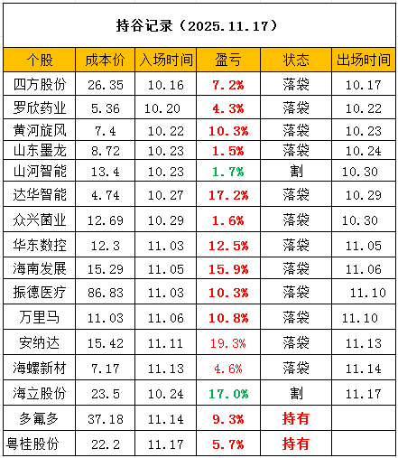 近期持谷记录:
