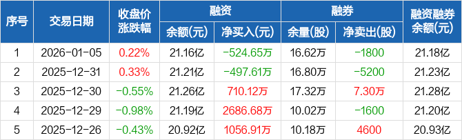 华能水电:融资净偿还524.65万元,融资余额21.16亿元(01-05)