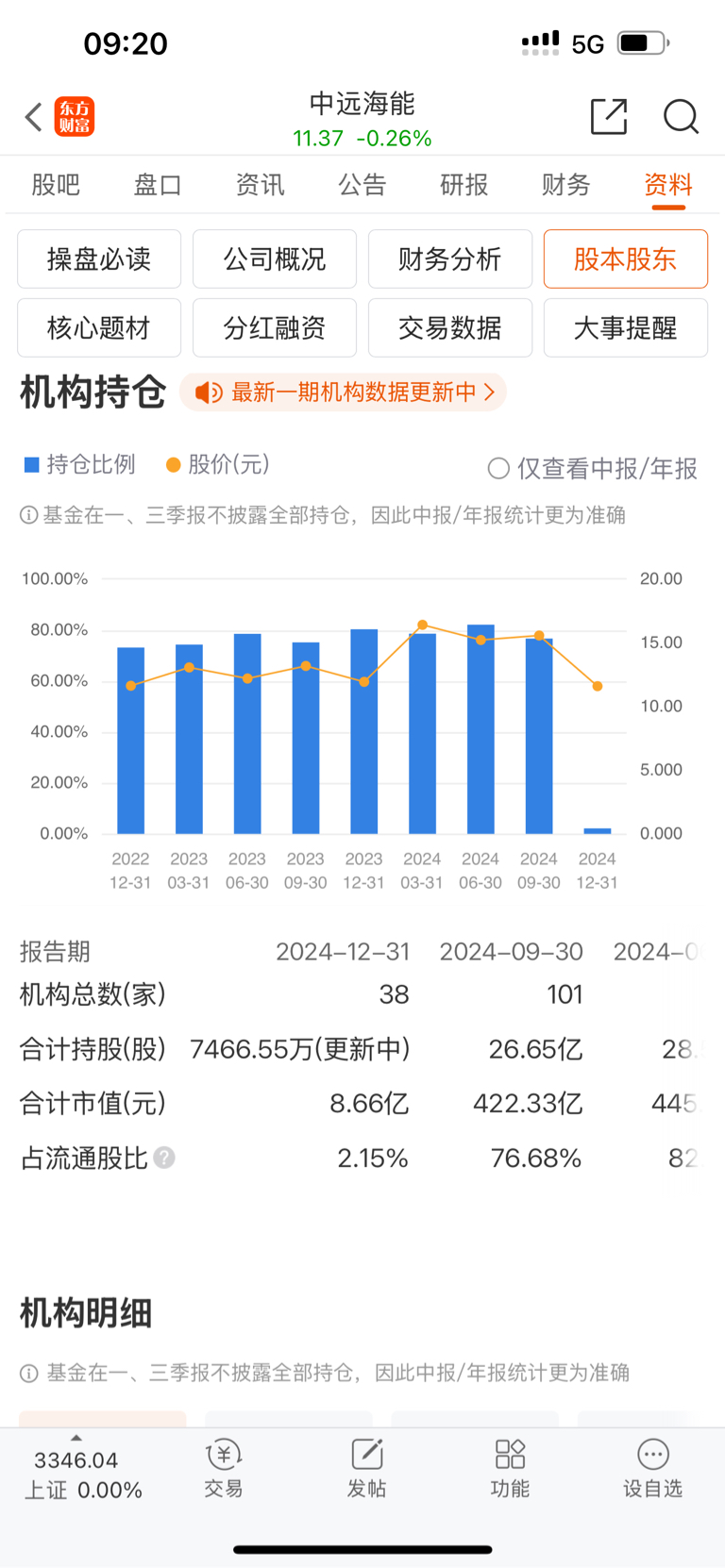 $中远海能(SH600026)$ 机构都跑完了
