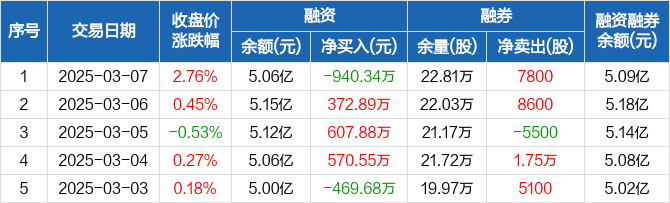 中远海能:融资净偿还940.34万元,融资余额5.06亿元(03-07)