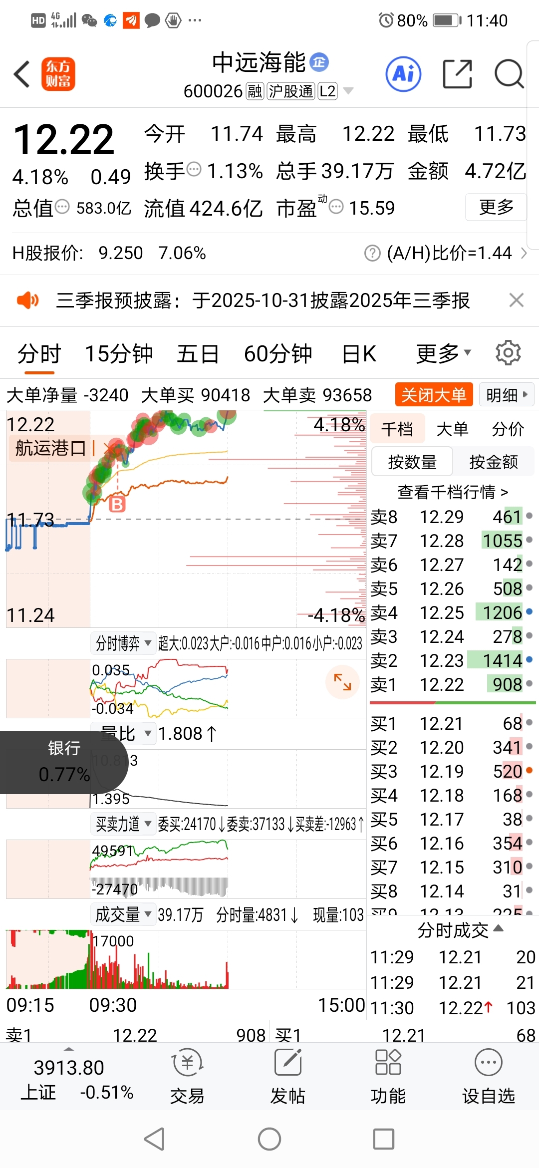 $中远海能(SH600026)$ 同志们,我又冲进来啦,下午面对疾风吧