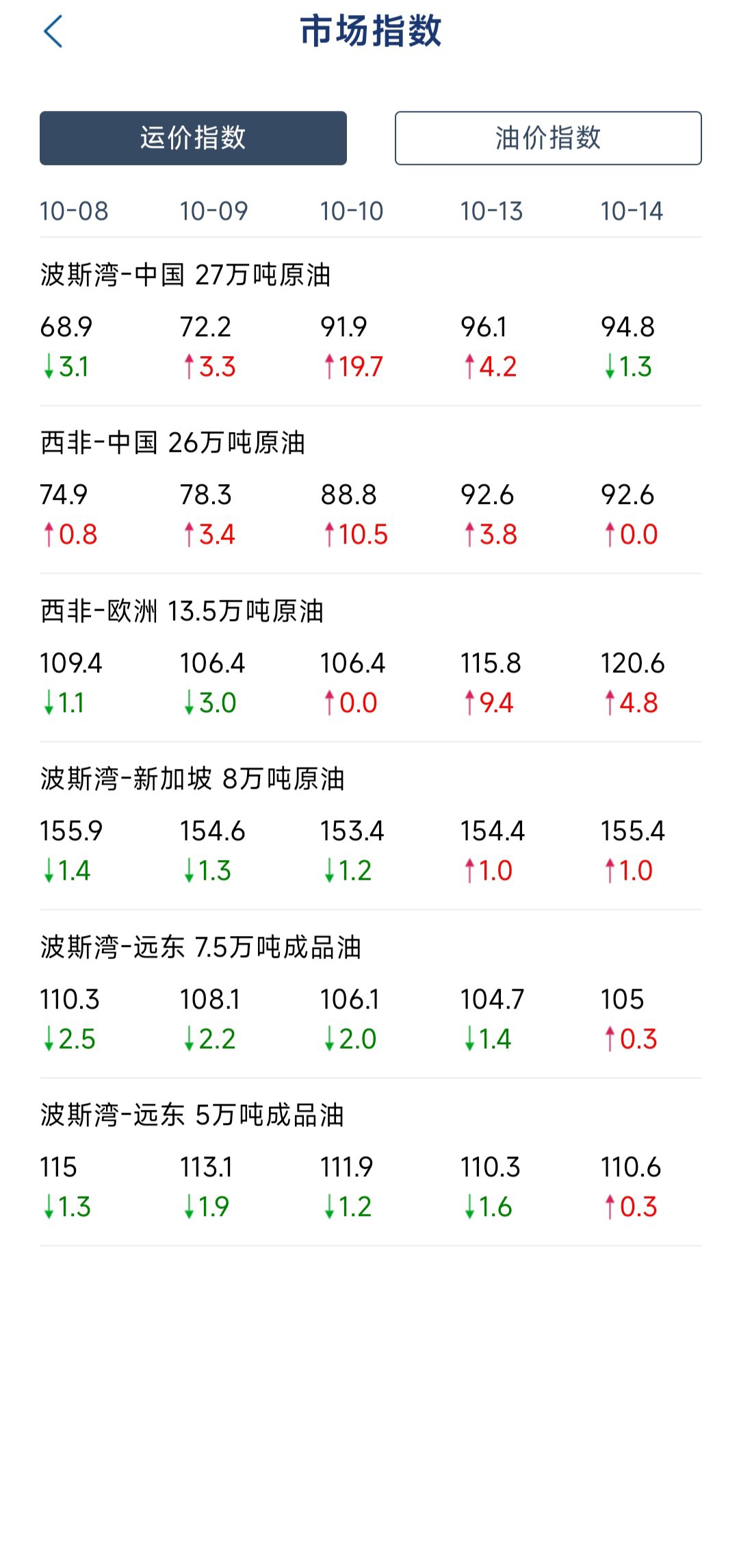$中远海能(SH600026)$ vlcc微跌,其他油船开始回升!成品油船止跌回升!$招商南油(SH601975)$ $招商轮船(SH601872)$
