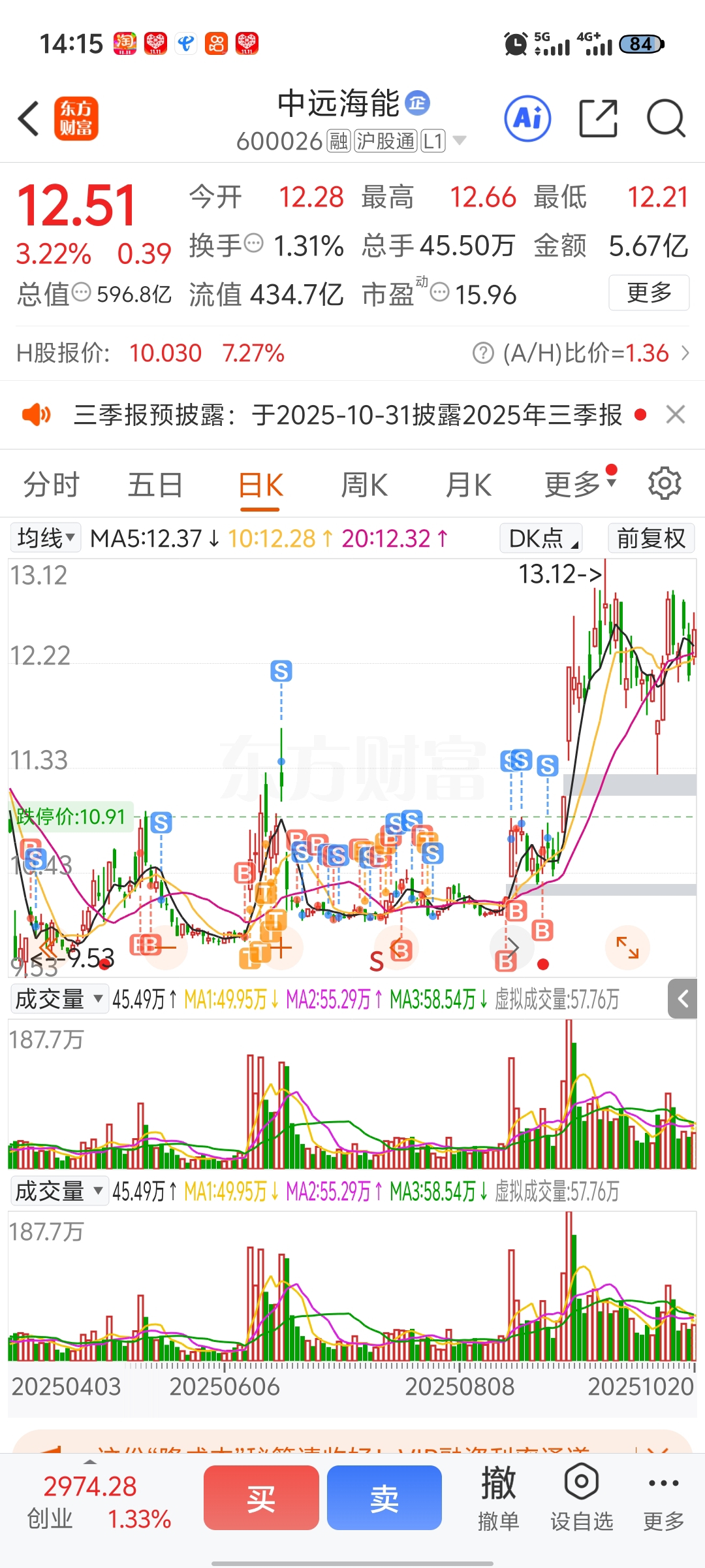 $中远海能(SH600026)$ 为啥每一个都是我跑了它就开始涨