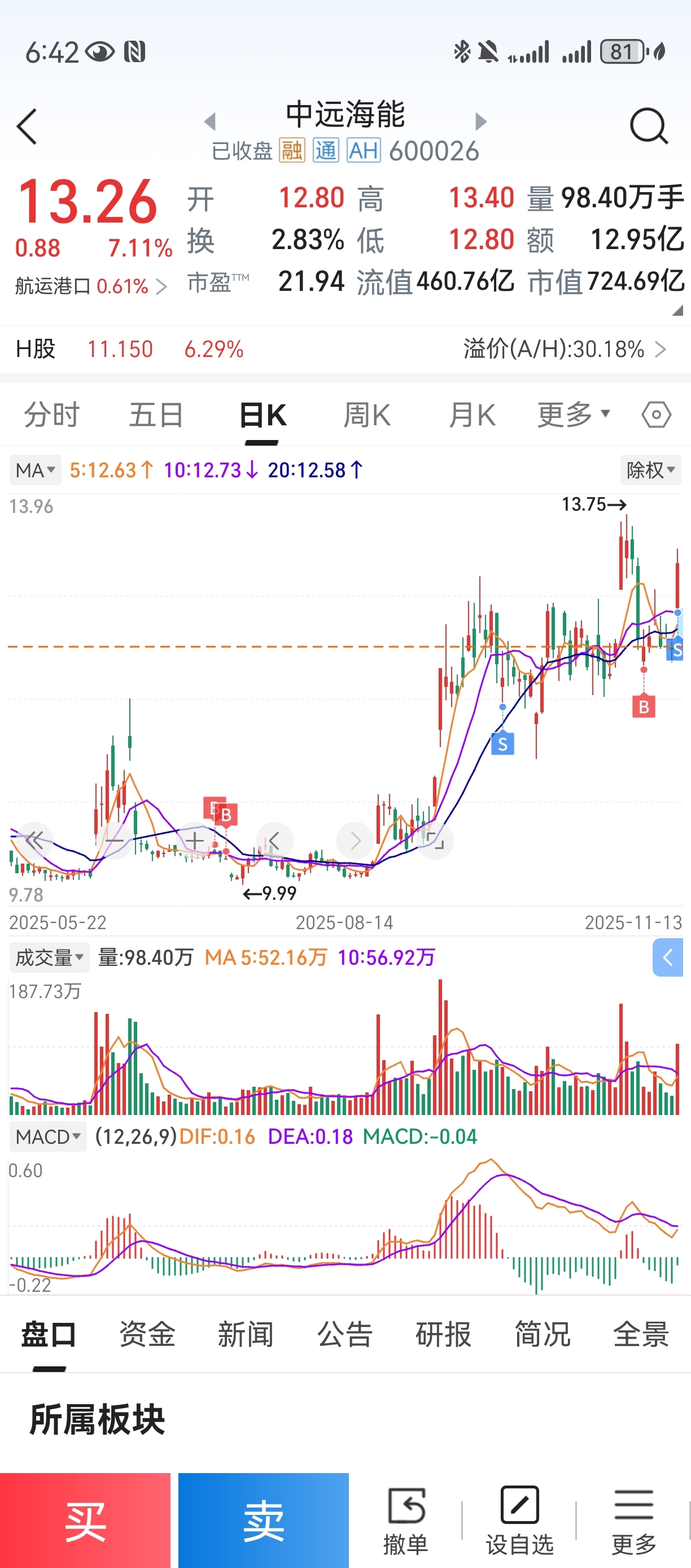 $中远海能(SH600026)$ 行了 赚了一个月工资收手了 明年再看了