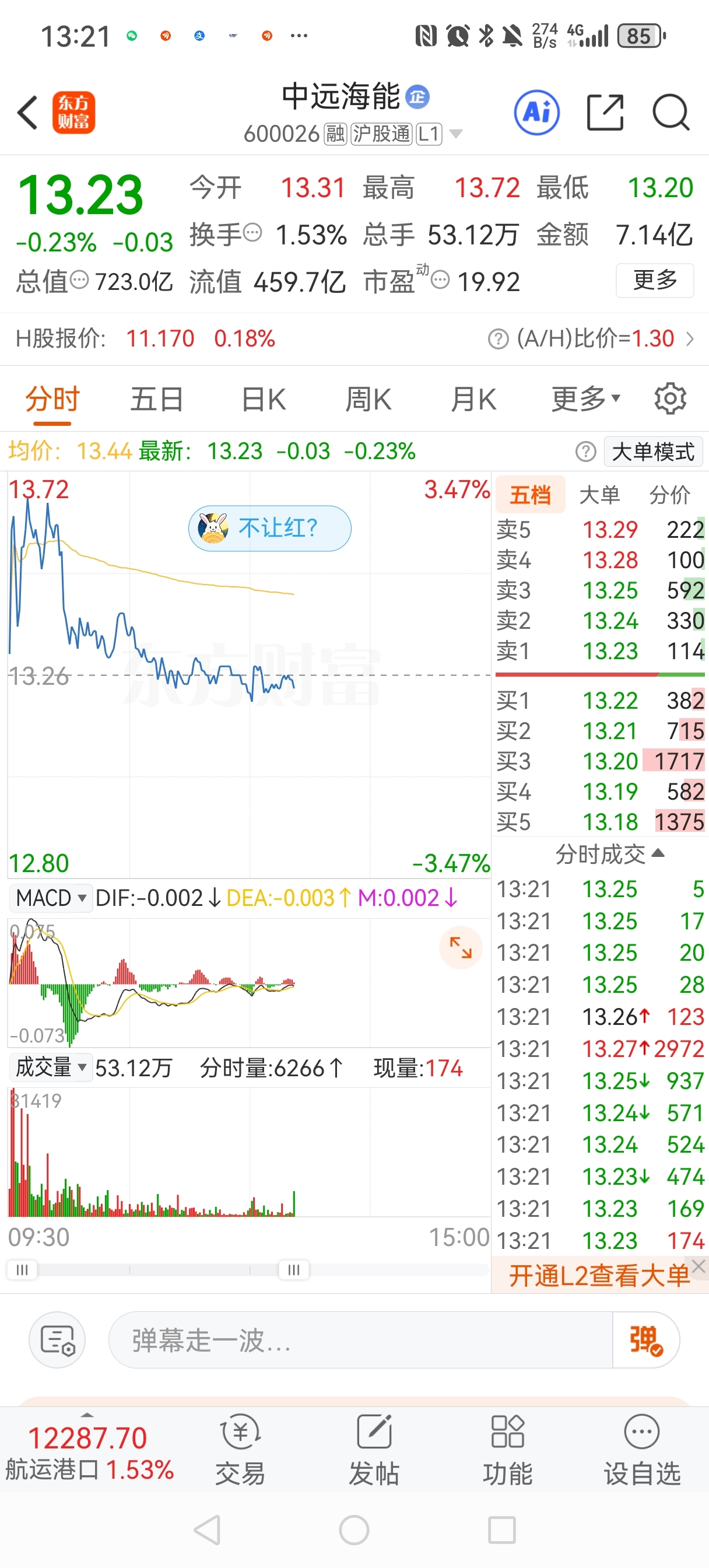 $中远海能(SH600026)$ 刚拉红就大单砸绿,怎么玩