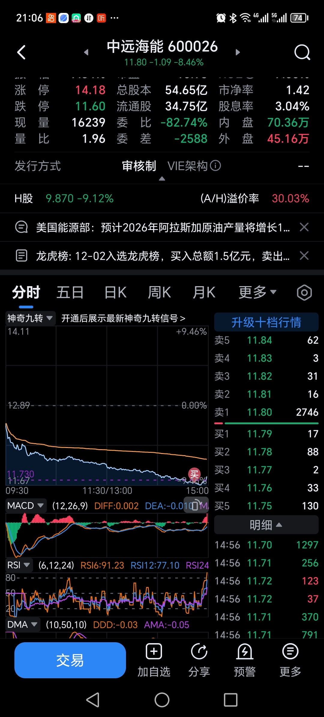 $中远海能(SH600026)$ 只赚了一点点,明天低开不跑,高开就走人