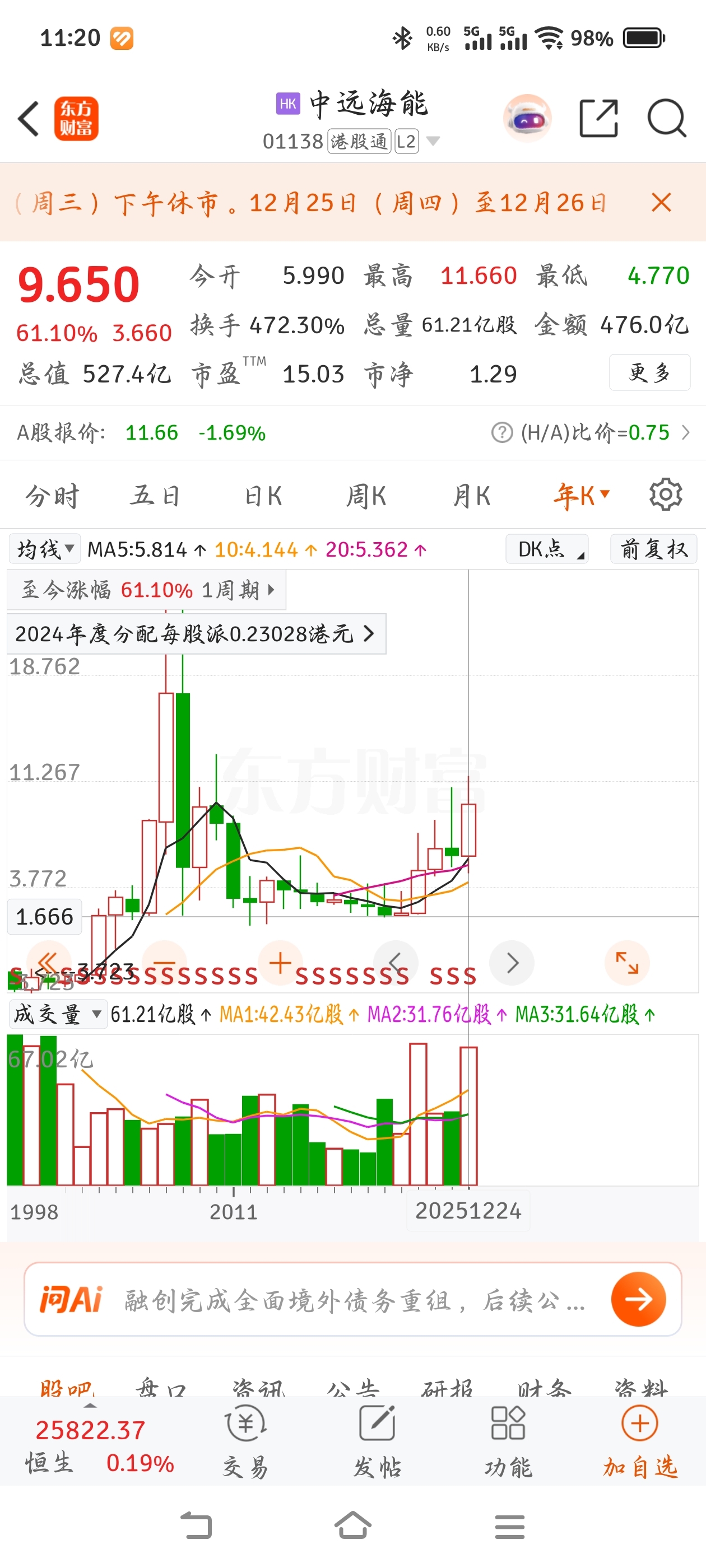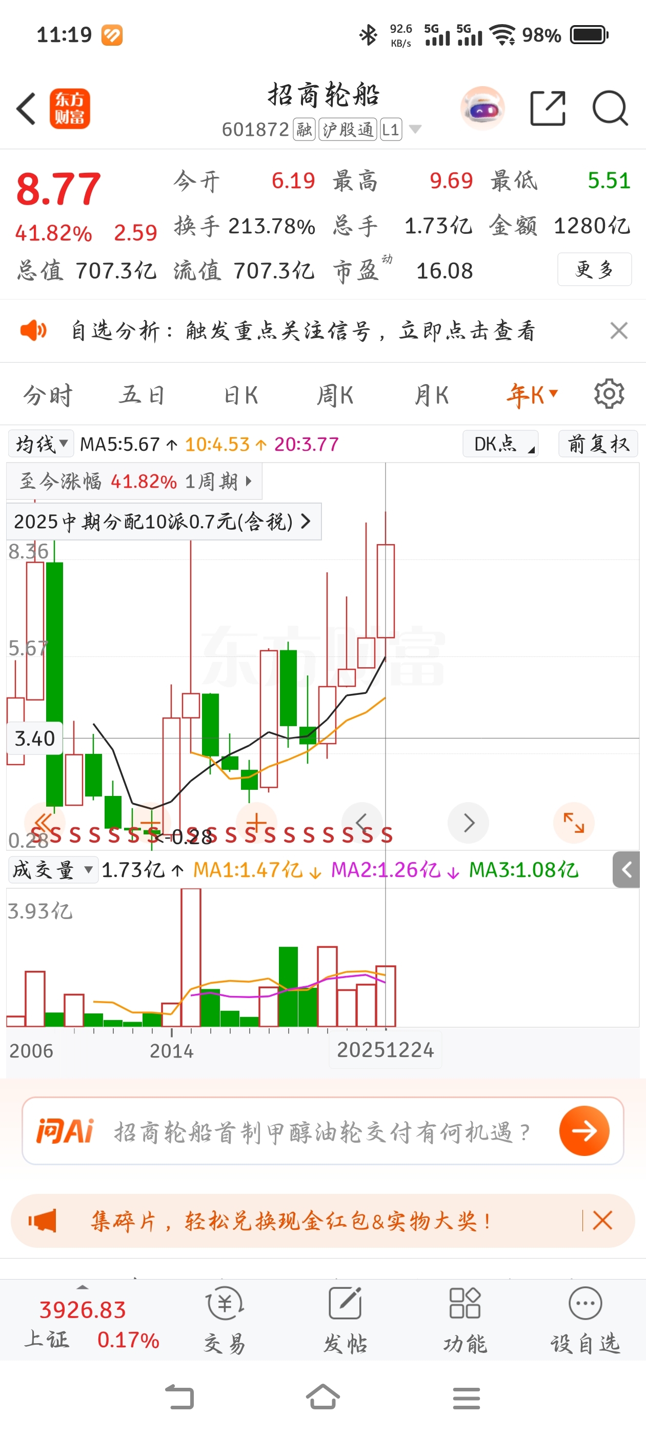 港股年涨幅61%,招商轮船年涨幅41%,中远海能年涨幅2%,不知道哪来的脸还天天