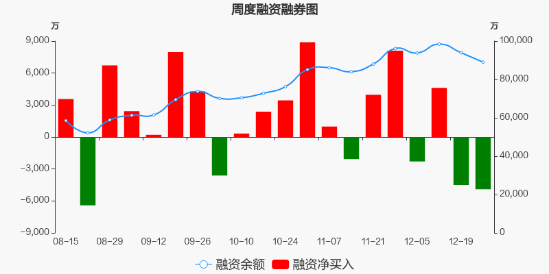中远海能本周(2025/12/22-2025/12/26)累计涨幅达1.03%,截至12月26日最新股价报收11.73元。从增量上来看,12月22日至12月26日融资买入交易规模1.74亿元,融资偿还规模2.23亿元,期内融资净偿还4903.13万元。从存量上来看,截止12月28日,中远海能融资融券余额8.92亿元,其中融资余额规模8.9亿元,融券余额规模197.53万元。