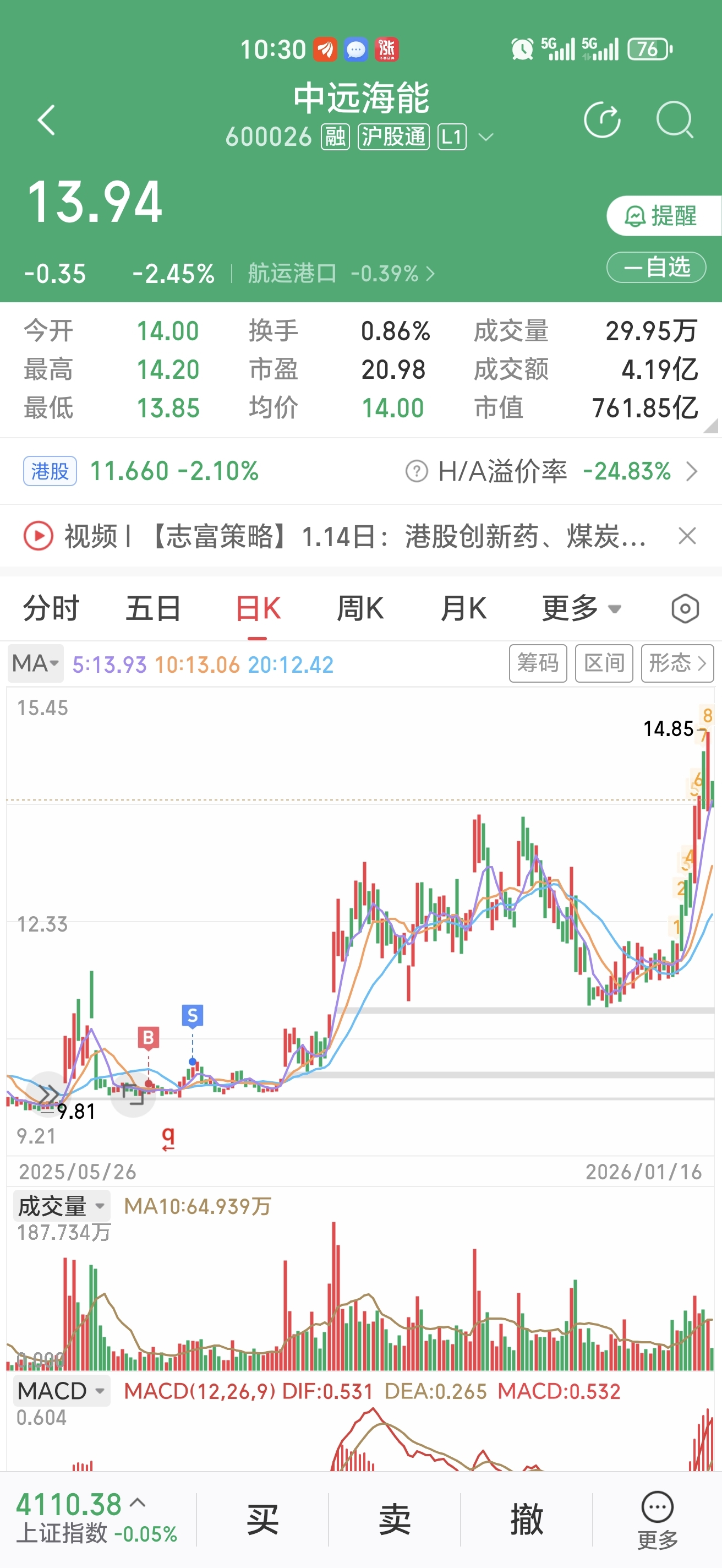 $中远海能(SH600026)$
