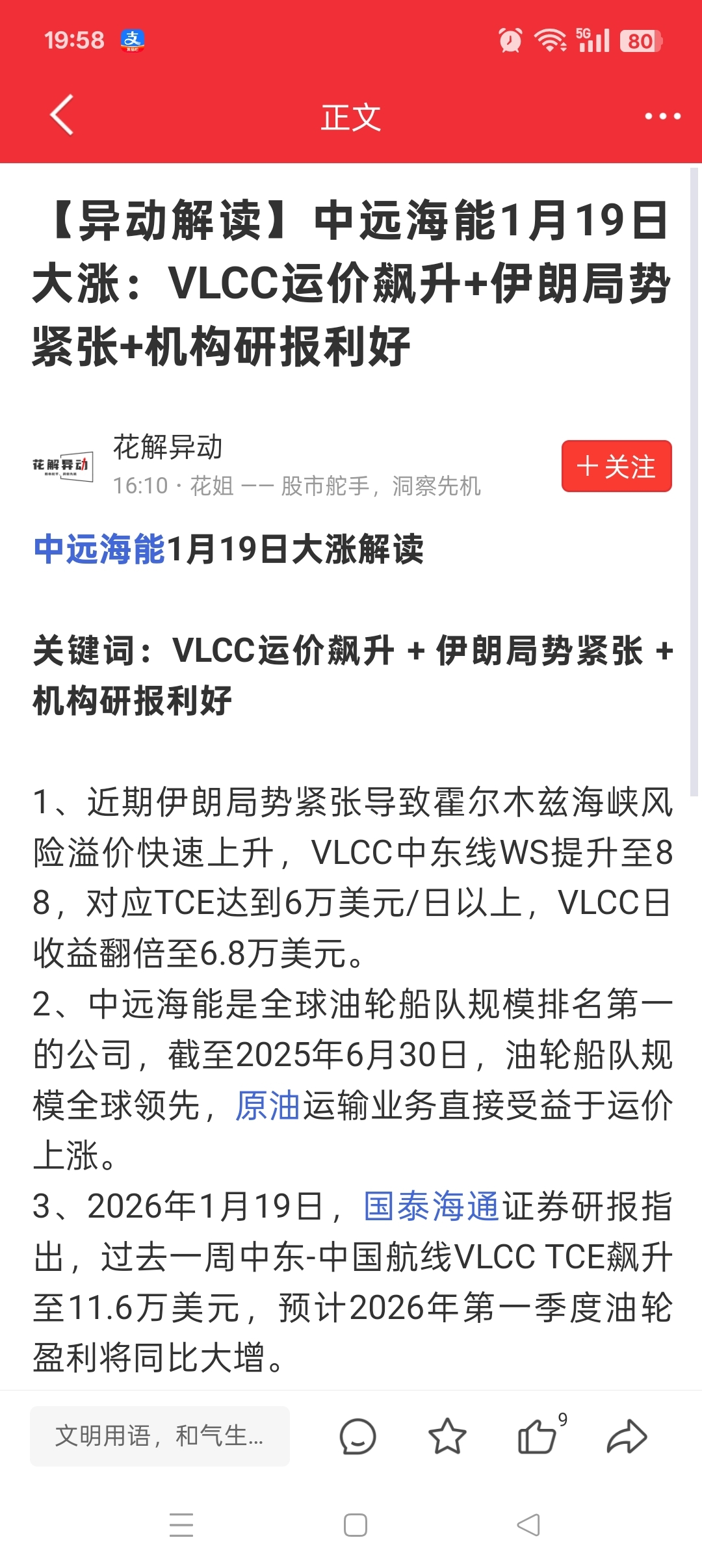 $中远海能(SH600026)$