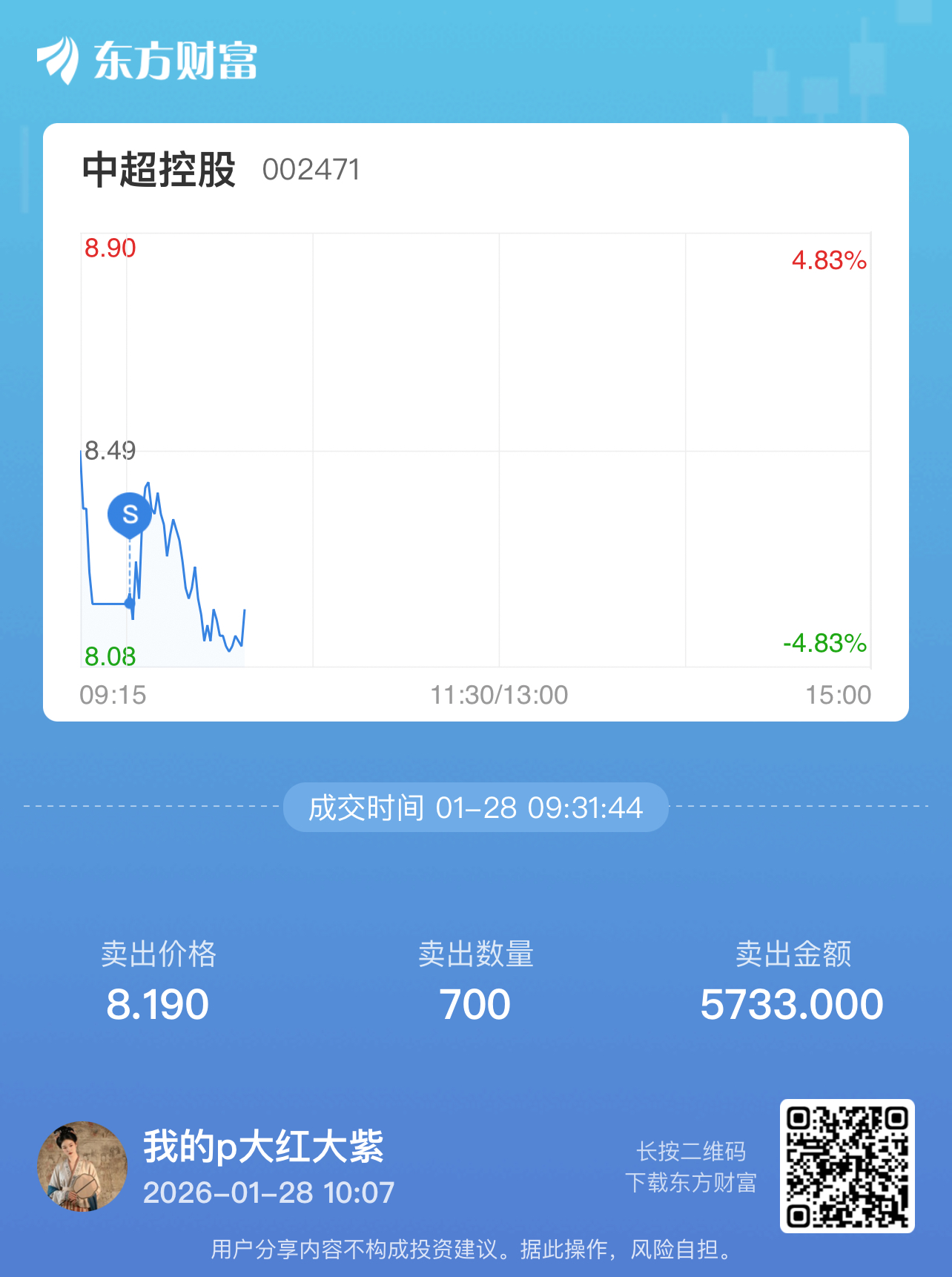 温馨提示: 1.根据《证券法》规定,禁止编造、传播虚假信息或者误导性信息,扰乱证券市场;2.用户在本社区发表的所有资料、言论等仅代表个人观点,与本网站立场无关,不对您构成任何投资建议。用户应基于自己的独立判断,自行决定证券投资并承担相应风险。《东方财富社区管理规定》