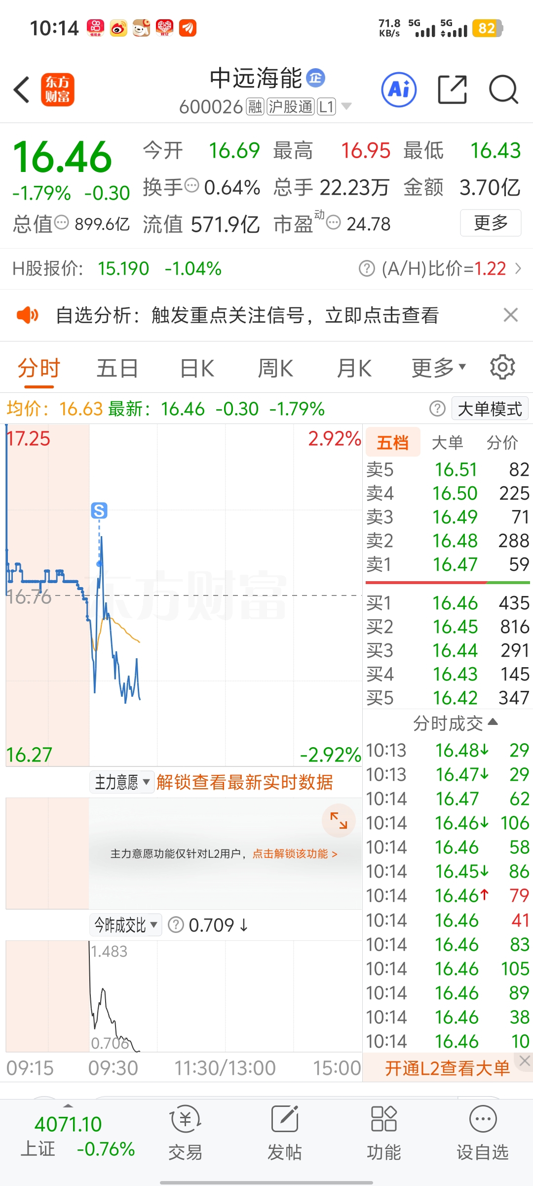 $中远海能(SH600026)$ 昨天放量上涨,今天主力出货只要不贪会给跑路机会,就这样吧。