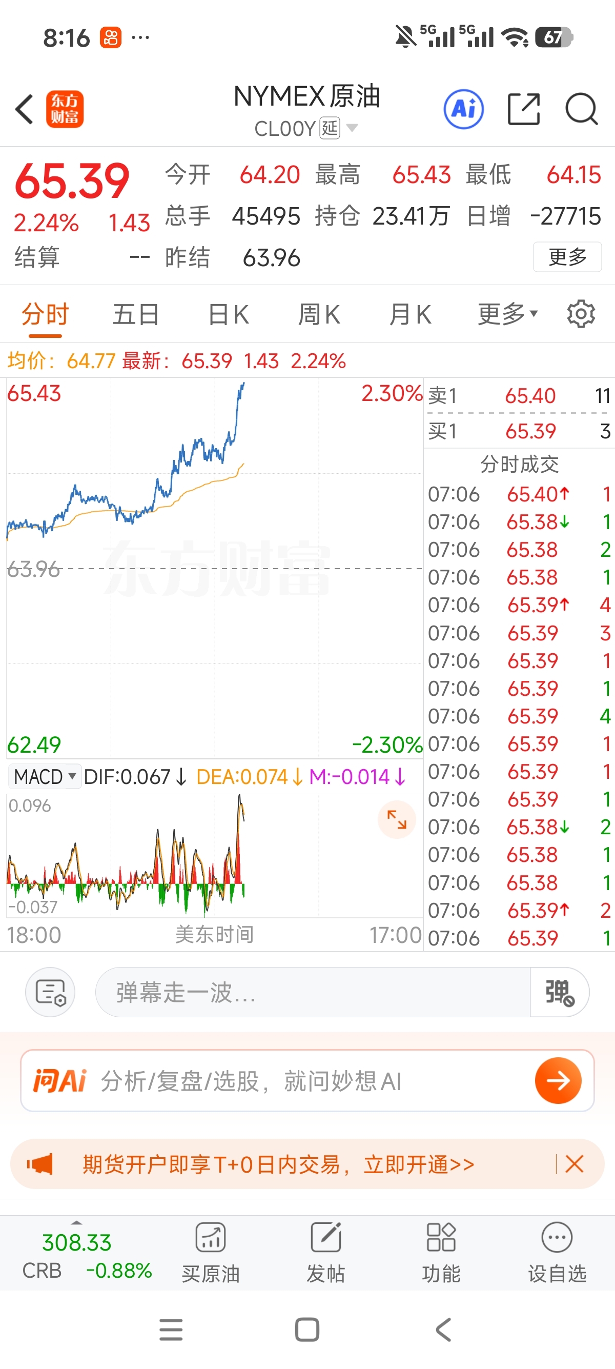 $中远海能(SH600026)$ 原油暴涨,明天高开暴力拉升